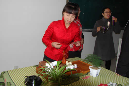 12月5日上午9点,文化艺术学院李敏老师在教学楼2号309教室举办《茶文化与女大学生修养》讲座,讲座围绕中国茶文化的精髓“和”、“静”、“怡”、“真”的茶道精神展开,阐述了茶文化对女大学生丰富人文内涵的作用,茶艺修习对女大学生综合修养的提升。讲座上师生共同进行了精彩的茶艺表演.。