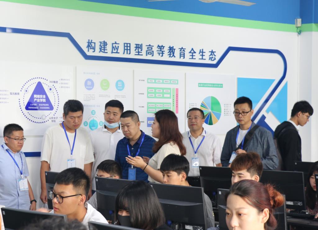 启动仪式后,山东女子学院党委书记郭翠芬陪同与会嘉宾参观了网络安全实验室、创新创业学院京东校园实训中心等。